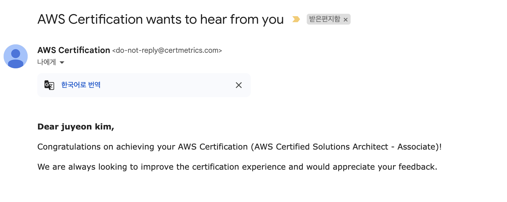 문제를 다 풀고 시험 종료를 하고 나오면 개개인마다 결과통지 시간이 다르다고 하지만, 나 같은 경우에는 오후 8시쯤 결과를 메일로 받을 수 있었다.