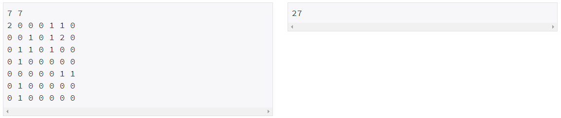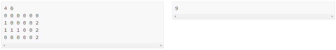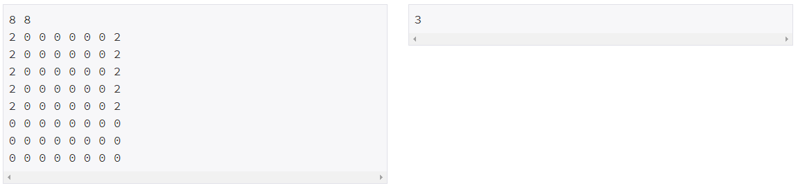 첫째 줄에 지도의 세로 크기 N과 가로 크기 M이 주어진다. (3 ≤ N, M ≤ 8)