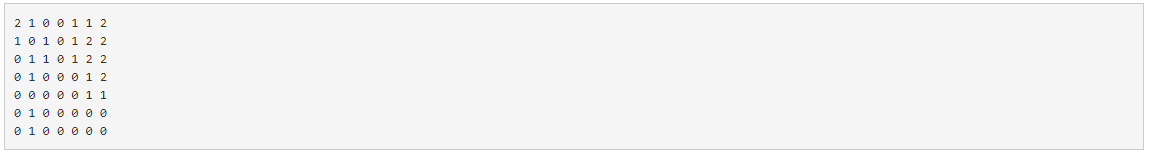 둘째 줄부터 N개의 줄에 지도의 모양이 주어진다. 0은 빈 칸, 1은 벽, 2는 바이러스가 있는 위치이다. 2의 개수는 2보다 크거나 같고, 10보다 작거나 같은 자연수이다.
