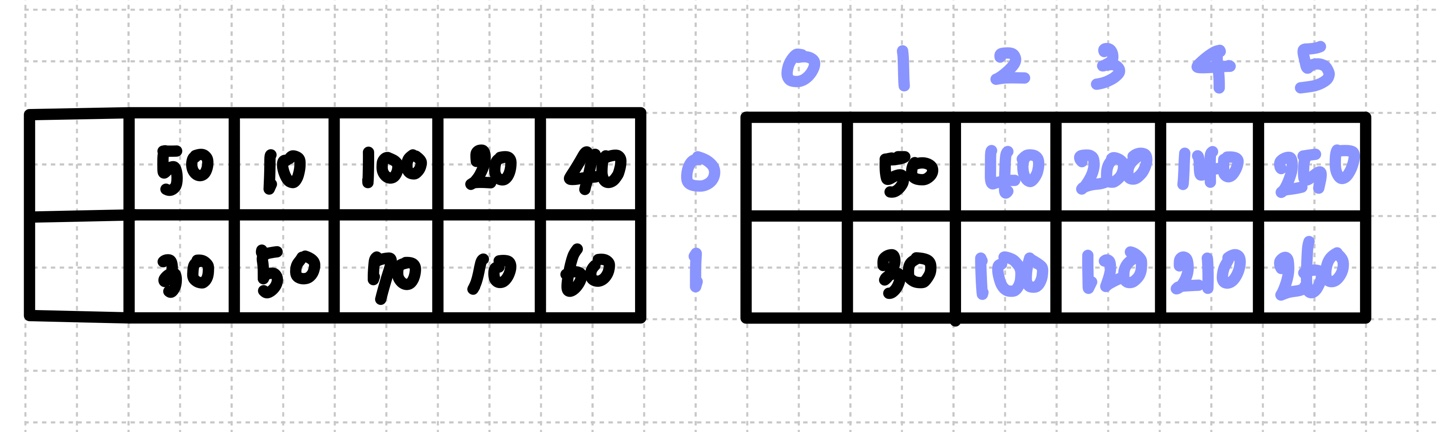 dp[0][j] = Math.max(dp[1][j-1], dp[1][j-2])+arr[0][j];