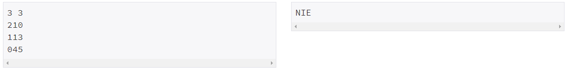 아무 음식도 먹을 수 없으면 "NIE"(폴란드어로 NO를 의미)를 출력한다. 이외의 출력은 하지 않는다.