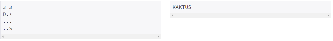 첫째 줄에 고슴도치가 비버의 굴로 이동할 수 있는 가장 빠른 시간을 출력한다. 만약, 안전하게 비버의 굴로 이동할 수 없다면, "KAKTUS"를 출력한다.