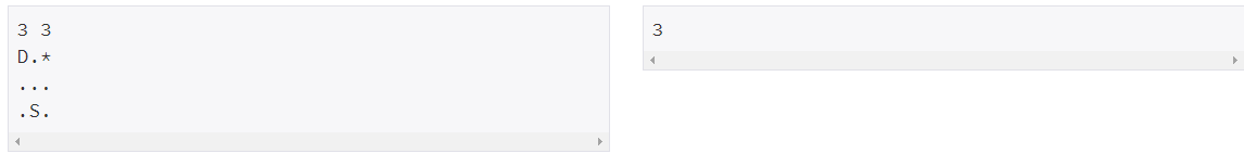 다음 R개 줄에는 티떱숲의 지도가 주어지며, 문제에서 설명한 문자만 주어진다. 'D'와 'S'는 하나씩만 주어진다.