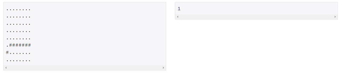 8개 줄에 걸쳐서 체스판의 상태가 주어진다. '.'은 빈 칸, '#'는 벽이다. 가장 왼쪽 아랫칸은 항상 벽이 아니다.