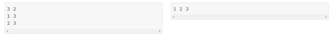 첫째 줄에 N(1 ≤ N ≤ 32,000), M(1 ≤ M ≤ 100,000)이 주어진다. M은 키를 비교한 회수이다. 다음 M개의 줄에는 키를 비교한 두 학생의 번호 A, B가 주어진다. 이는 학생 A가 학생 B의 앞에 서야 한다는 의미이다.