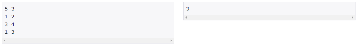 첫째 줄에 정수 N과 M이 주어진다. N은 아이스크림 종류의 수이고, M은 섞어먹으면 안 되는 조합의 개수이다. 아래 M개의 줄에는 섞어먹으면 안 되는 조합의 번호가 주어진다. 같은 조합은 두 번 이상 나오지 않는다. (1 ≤ N ≤ 200, 0 ≤ M ≤ 10,000)
