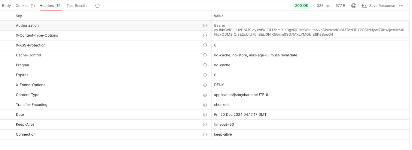 case2) 정상로그인 - Headers에 AccessToken 값 확인가능